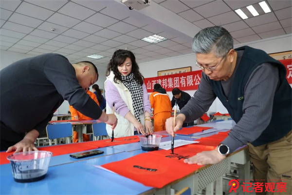 记者观察网山西2月11日电(贾亚鹏)小年纳福瑞,墨香满建邦。在农历小年来临、新春佳节将至之际,侯马市书法家协会主席王雨生率协会书法家代表深入山西建邦集团,开展新春书法文化交流活动,现场挥毫泼墨,专为集团创作书写大门春联,以笔墨寄情、以文墨贺岁,为企业增添浓浓年味与文化气韵。