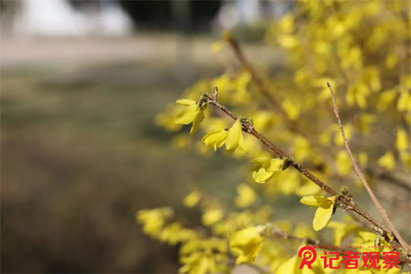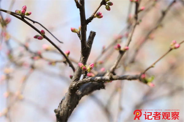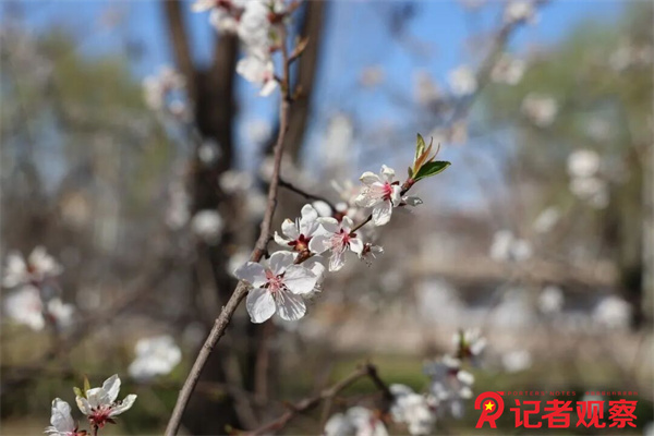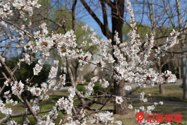 沿着花间小道步道前行,桃花、杏花、迎春花次第铺展成彩色长廊。粉若云霞的桃花簇拥在脱硫塔旁,微风过处,花瓣簌簌飘落,在绿色草坪上织就粉色锦缎,与地面的银灰色形成强烈视觉冲击。花丛中,蜜蜂穿梭忙碌,鸟鸣与远处车间的机械韵律交织,奏响了工业文明与自然生态的和谐乐章。